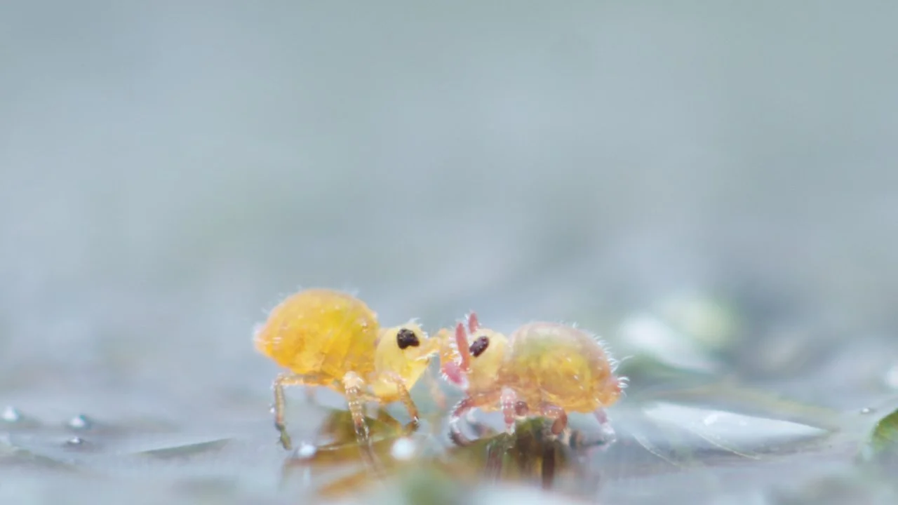 Juvenile Sminthurides aquaticus, practicing the courtship ritual…